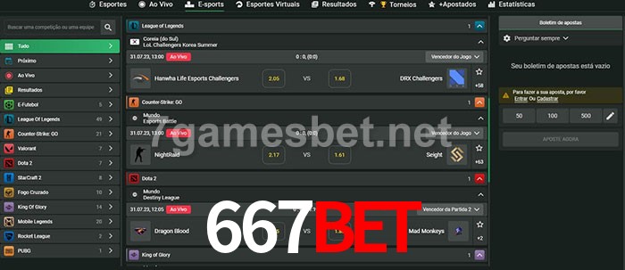 O 667Bet oferece uma grande seleção de opções de apostas em e-sports com probabilidades competitivas